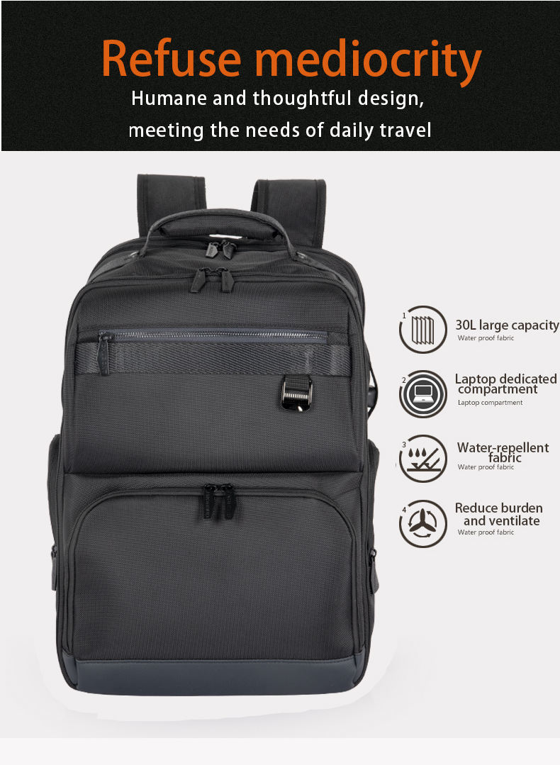 From a performance perspective, this backpack prioritizes user comfort and functionality during prolonged use and travel. Its ergonomic design minimizes strain, while the dedicated laptop compartment safeguards sensitive electronics, supporting compliance with business travel protocols. The multiple storage compartments allow for systematic arrangement of documents, gadgets, and personal items, improving user workflow efficiency. This product's combination of high capacity, structural reliability, and refined aesthetics meets the demanding standards for a mens travel bag suitable for professional environments, offering an excellent return on investment for companies sourcing business backpack solutions.